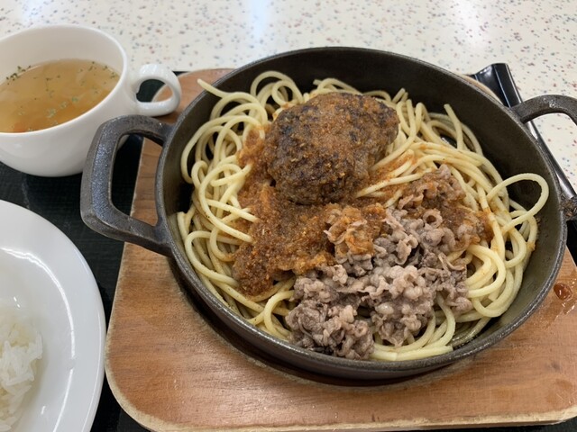 ナポリタン・バターライス・サラダともう一品がとんかつ、ハンバーグ、海老フライから選...