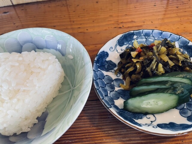 相変わらずの地元のヒノヒカリを、注文してから握るおにぎりは美味い!塩にぎりなんですが2個で無く4個食べたくなる勢い。 高菜漬...