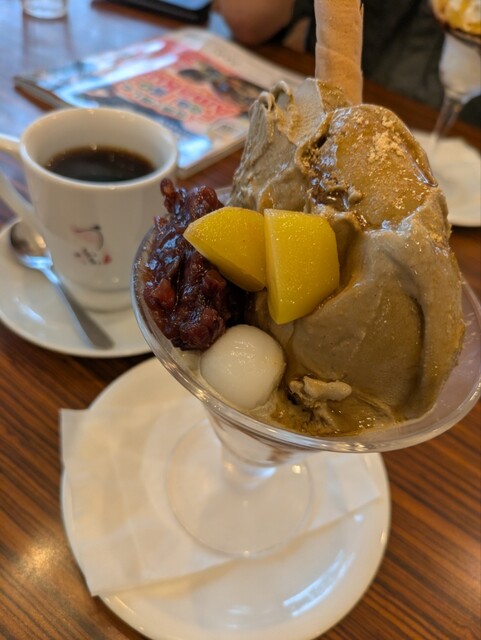 写真のはほうじ茶の和風パフェ。 パフェのメニューが裏表4ページくらいあるので、決めるまでに時間がかかる。この悩んでいる時間が悩ましいけれど楽しい。 夏限定のメロンパフェ目当... 詳細を見る
