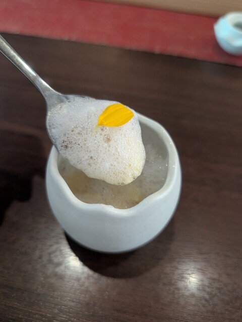 【味】 ◯旬のサラダ 食感が絶妙になるよう、各野菜ごとに調理の仕方が違いました。 サラダのソースは、チーズのようなコクとコンソメのパンチがミックスしたような濃厚な味わいでした。 どの野菜とも相性がよく、とても美味しいです。 ◯トリュフの茶碗蒸し トリュフの旨味が茶碗蒸しに染み出してい... 詳細を見る