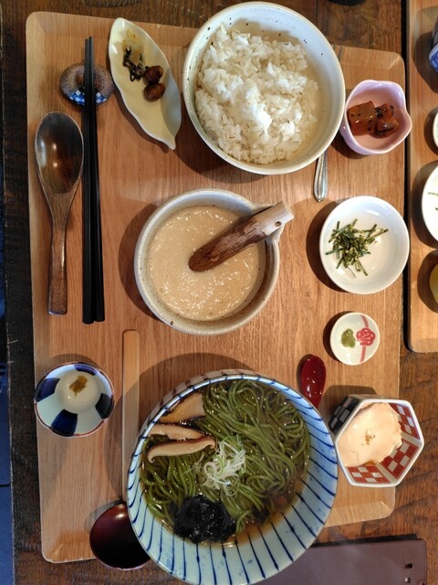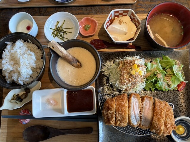 店内は窓ガラスが大きく開放感と明るさがある素敵なお店で、今回は麦とろ膳1310円を注文。内容はとろろ汁(自然薯)・麦飯・味噌汁・自家製すくい豆腐・小鉢・きざみ海苔・茎わさび・デザートとなっていて、自然薯が食べれて1310円は安すぎる。