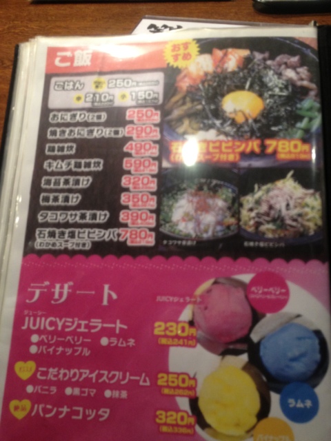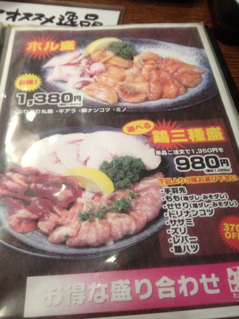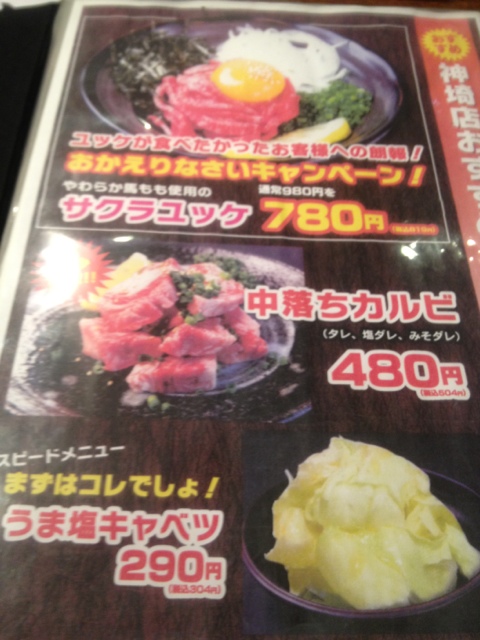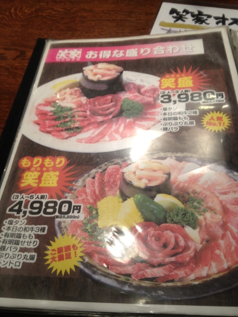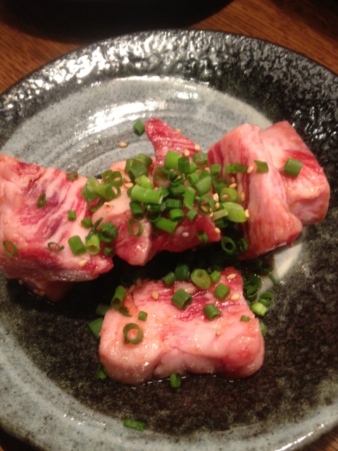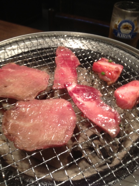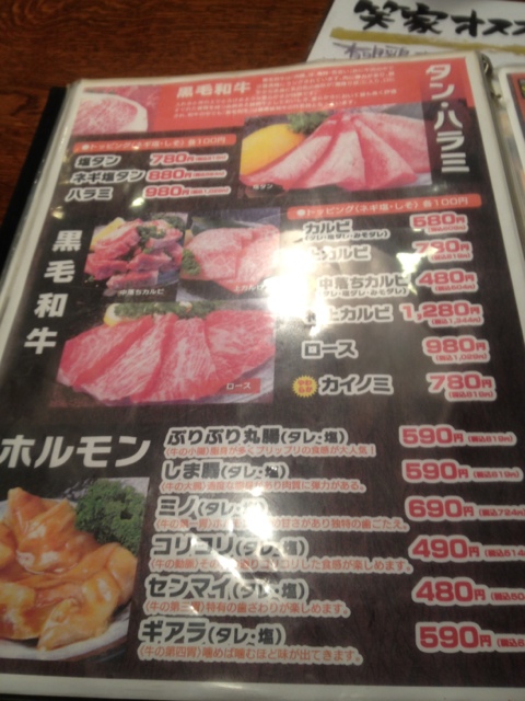 で、お肉の注文。上カルビとロース、塩タンなどを注文。