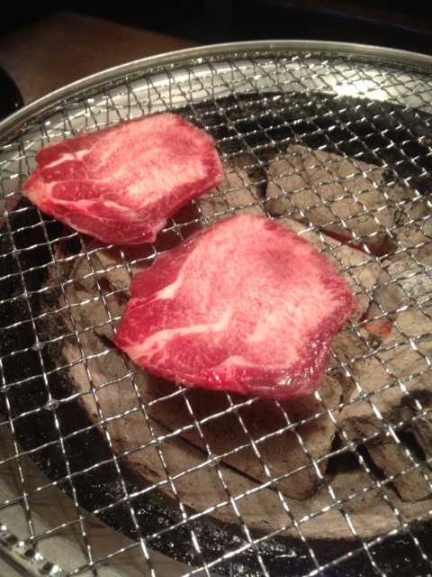 お肉は程よく刺しが入ってますね。こりゃ、焼いたあとの肉汁が凄いぞ!などと思いながら、網の上にそっと置きました。