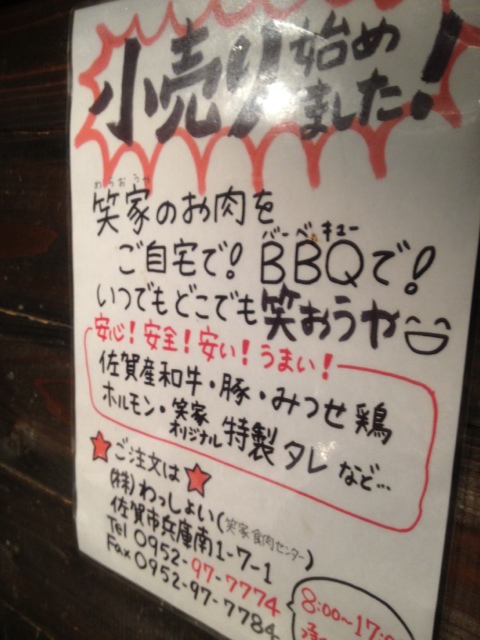 と、晩ご飯を食べに、「七輪網焼 居食屋ランチ笑屋 佐賀店」さんいお邪魔しました。