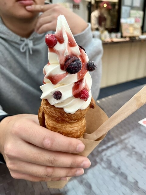 久しぶりに行ったら値上がりしてました。物価高だから仕方ないけどお得感は無くなってしまい普通になっちゃいました。まだ凍ったままのベリーは酸っぱく数も少なめ。コロネの中にはカスタードクリームが入っているんですけど味は至って普通。店主のお子様らしき子供が店の周りをドタドタ走り回っていて少し心配。