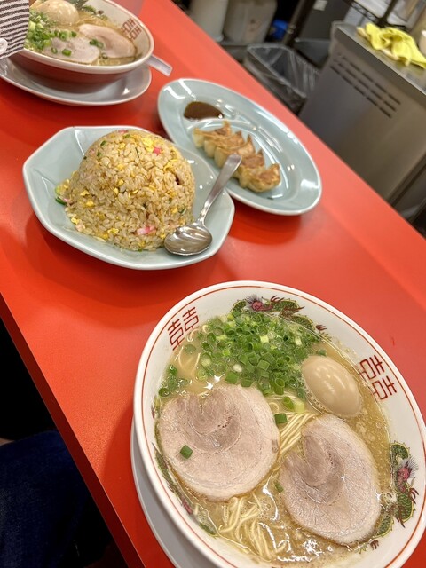 佐賀の神崎にある焼きめしが旨いラーメン屋。 SNSで見かけて伺いました。 日曜の12時頃に着いて外待ちあり。 他店舗と共用の広めの駐車場もいっぱいでした。 20分く... 詳細を見る