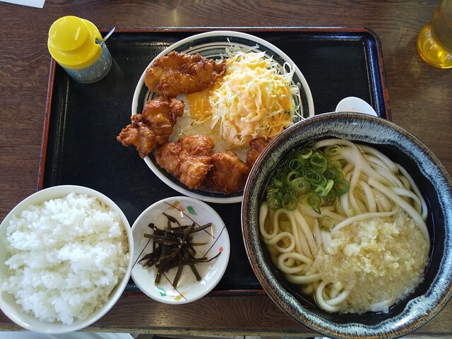 かれこれ期間を開けて2回目の再訪! ◯唐揚げセット ごぼ天トッピング 店内は、お昼時で満席! 注文後にセルフサービスのかりんとうと昆布の佃煮を取り分けて、つまみな... 詳細を見る