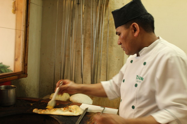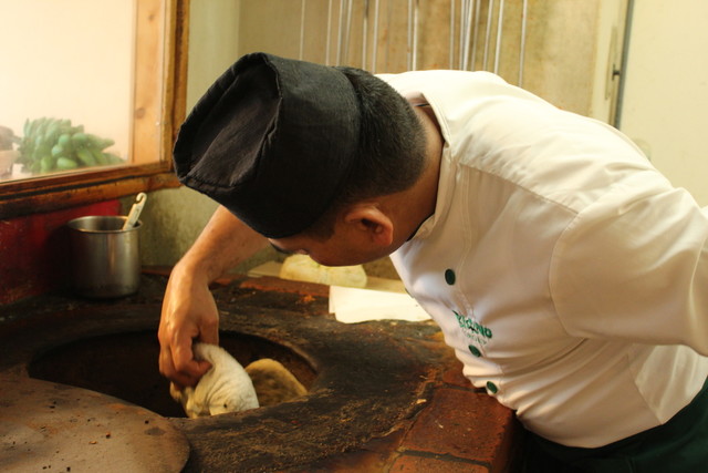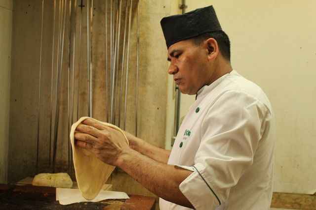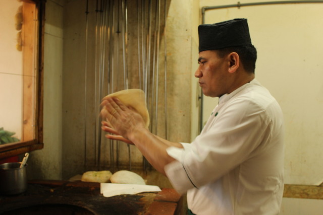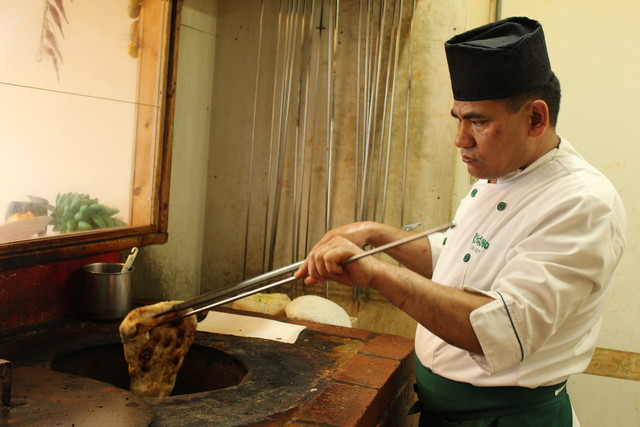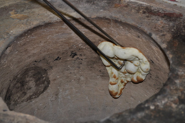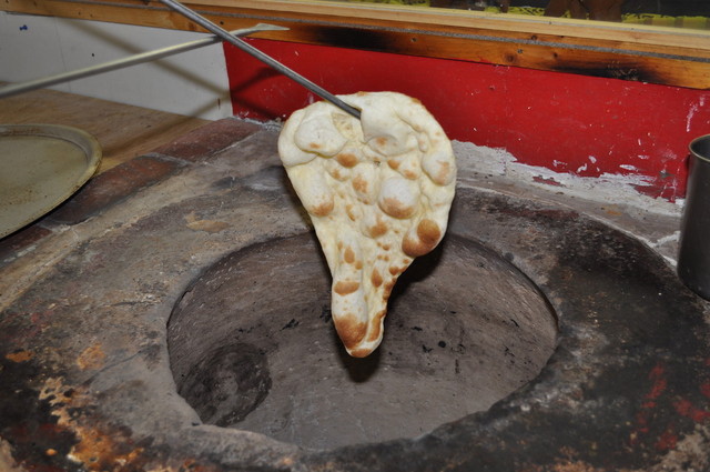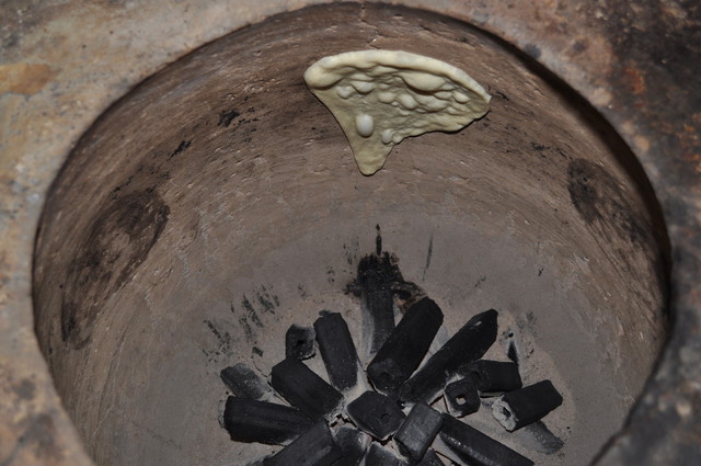 ナンはタンドールの内壁に生地を貼り付けて調... (by お店)