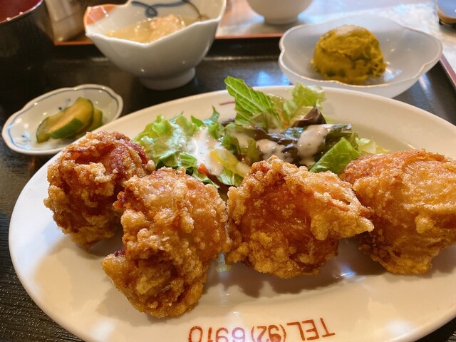 グルメマップというキャンペーンで知って訪れました。前回訪れた際にご飯ものが売り切れとの事だったので再来訪。日替わり定食840円を頼みましたが、揚げたてでした。種類はねぎ、かぼちゃ、しいたけ、なす、鶏天...