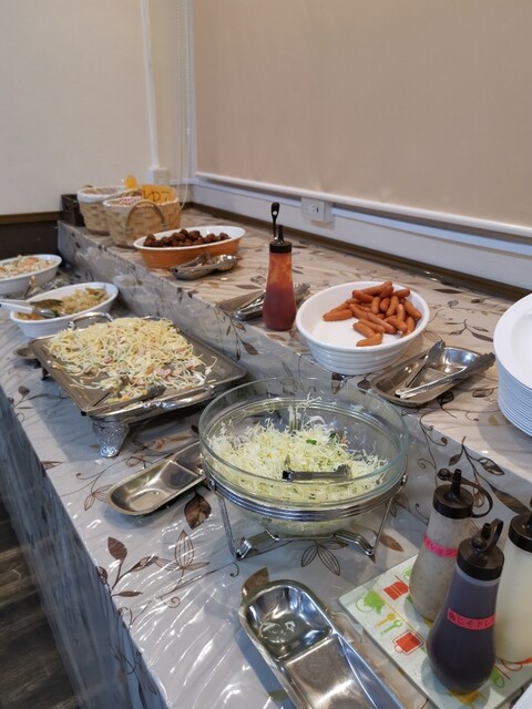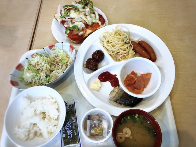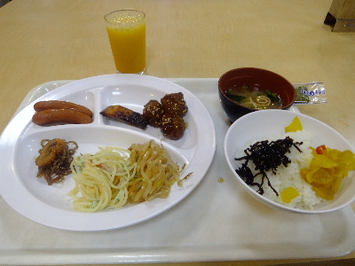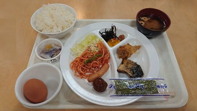 朝食ビュッフェ付で、品数こそ多くはないが和洋食完備。