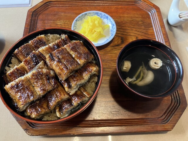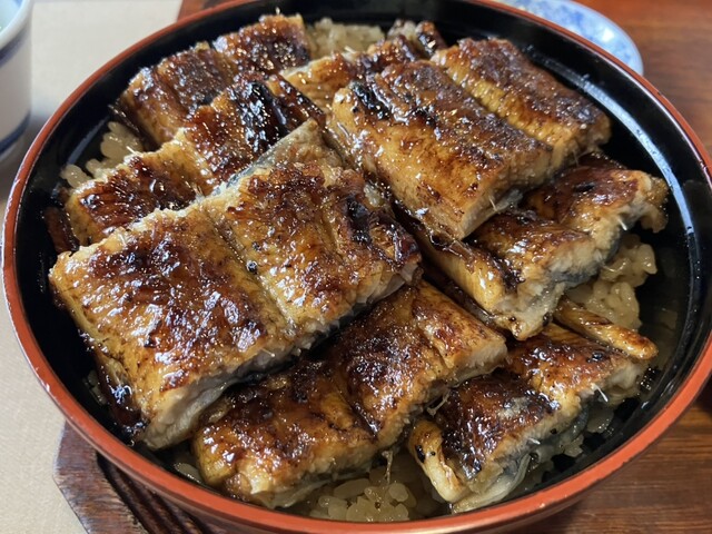お昼12時頃にお店へ。 ウェイティングボードを見ると4組待ち。 名前を書いて待つことにします。 平日とはいえ、GW中だからか、家族連れが多いようです。 4組待ちなので、それほど待たないかと思いきや、席に着くまでに1時間近く待ちました。 うなぎ丼の4切れ、肝吸い付きを注文。 後で近... 詳細を見る