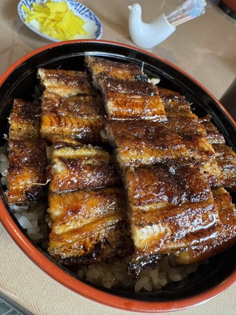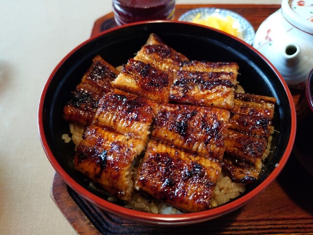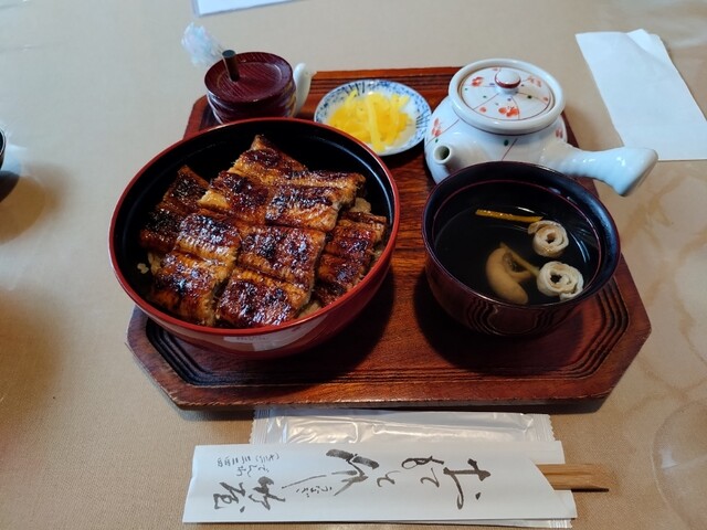 唐津でのお昼。イカと迷ったけど、知り合いの薦めで当店へ。 風情あるお店の外観を堪能しつつ、20分ほど待ってから店内へ。 まず、お茶が美味しいのにびっくり。 あえてぬるくして出してるみたい。店主のお茶出しの所作にこだわりを感じます。熱いのがご希望なら熱くしますとのこと。 うなぎ丼(五切... 詳細を見る