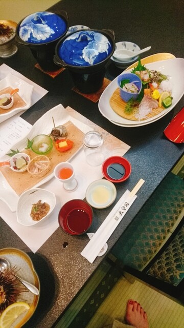 お刺身あり、お肉あり、イカしゅうまいやイカの活き造りもあり。温泉もあり!(料理関係ない(笑))...