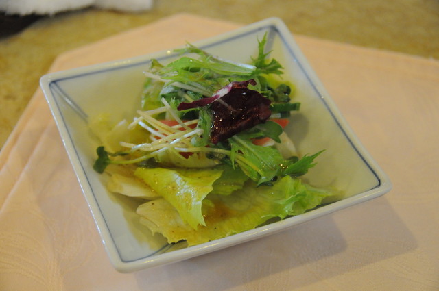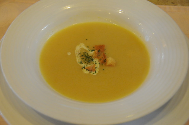 オーダから5分弱でまずはサラダとポタージュ〜シェフが持...