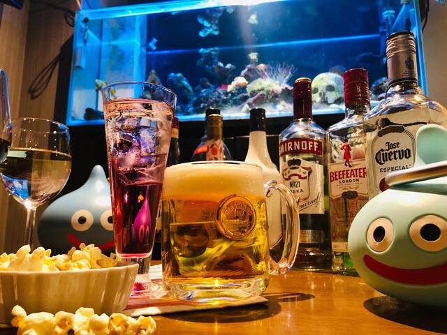 カクレクマノミが泳ぐ水槽がある店内。水にこだわり、料理に使用する水から氷まで安心のRO純水を使用。スペイン産のハモン・セラーノ生ハムは、原木よりスライスして提供します。30cm以上あるピザは、各種バリエーションで楽しめます。各種料理はテイクアウトもOK。カクテル、果実酒からタピオカドリンクやスムージーなどソフトドリンクも多数あり。ウエディング2次会や各種パーティーも得意です!