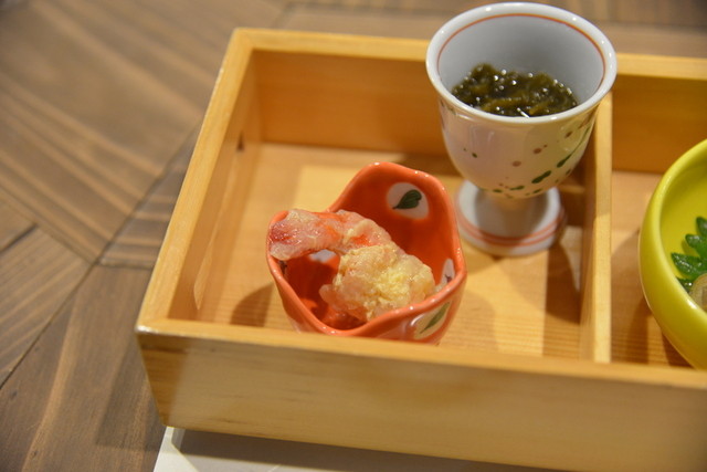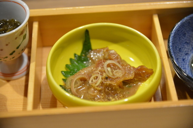伊万里牛すじ煮。これ美味しい。牛肉の出汁が よく出て甘過ぎない汁。肉もやわらかくとても 感じの良い一品。そして推しの大根カナッペ。 大根せんべいと生大根の間に、唐墨や青じそ、... 詳細を見る