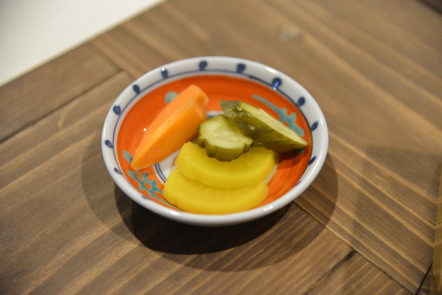 大根せんべいと生大根の間に、唐墨や青じそ、