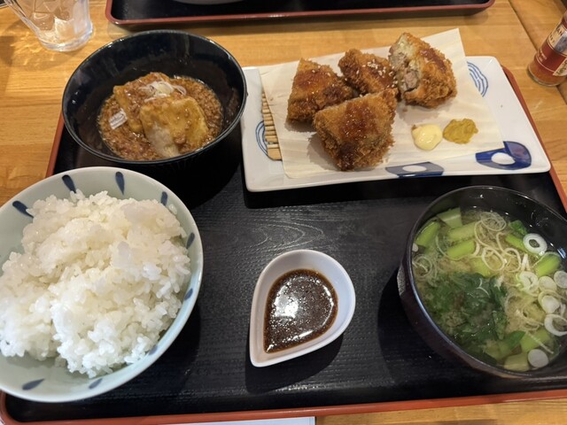ランチA880円を注文、チキンカツ、メンチカツ、カレーグラタン、豚汁とボリューム満載でこの値段、こんな店がいまだに残っているなんて!しかも、どれも美味しくて、特に、豚汁は美味しいものでした。お腹が一杯で、ご飯を半分くらい残してしまいました。すいません!