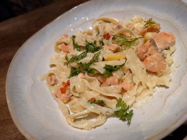 久々に来店しました。平日の夜だったからか人も少なく予約も必要なさそうでした。前菜や生ハムは変わらず美味しかったです。パスタも注文しましたが、サーモンとレモンが効いていて美味しかったです。メニュー表にイ...