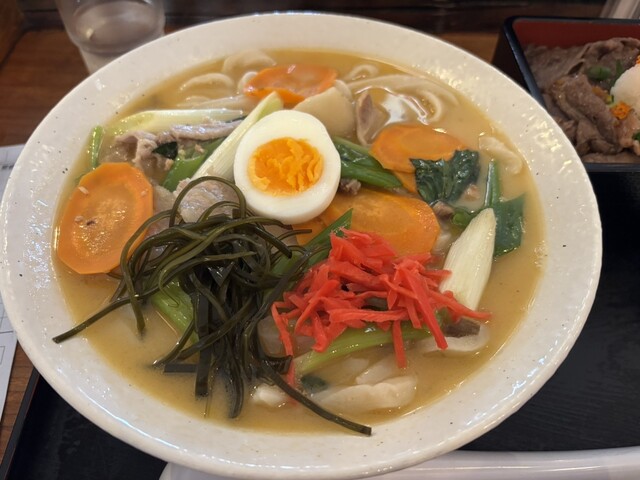ギリギリ手打ちうどんが残っており、私は「なす汁大盛」を、妻は「...
