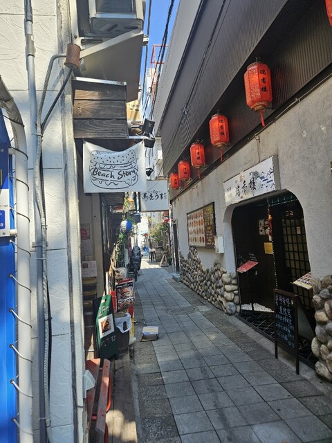 銀行の路地裏の細い道の一番手前にあり
