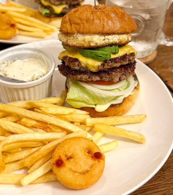 路地裏にひっそりと店を構える大宮初のハンバーガー専門店!安心の手ごね冷凍いっさいなしの国産牛100%パティ(肉)を使用しています!バンズはバターロール生地のほんのりと甘めなふかふかで中はサクッとした食感の仕上がり!店内は南国感を漂わせるゆったりとした空間でゆる〜い時間をお過ごしくださいませ! |