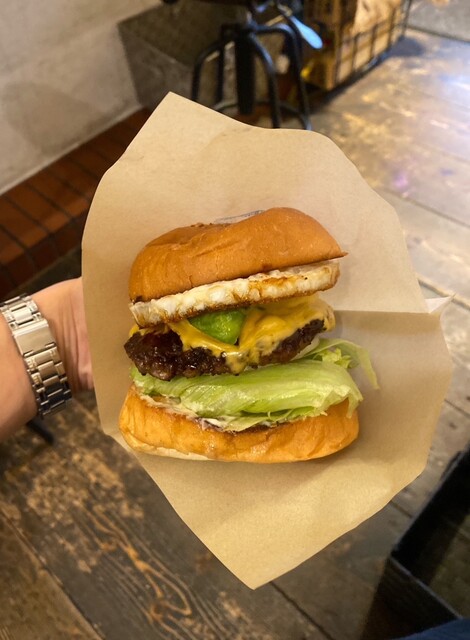 用事が終わってちょうど昼時だったので、食べログで周辺を検索すると、歩いてすぐの場所にこちらのハンバーガー屋さんを発見。