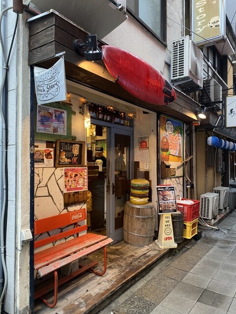 大宮駅東口から徒歩数分の細い路地沿いにある「バーガーズカフェ ビーチストーリー」さん。