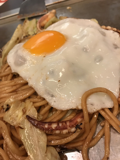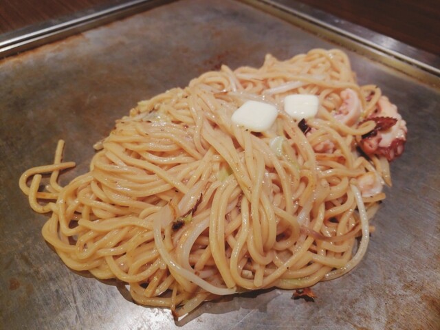 →今のおすすめメニューが、「期間限定たこメニュー」とのことから選択。太目の焼きそば麺に塩バターが絡み濃い味。いまや高級品のタ...