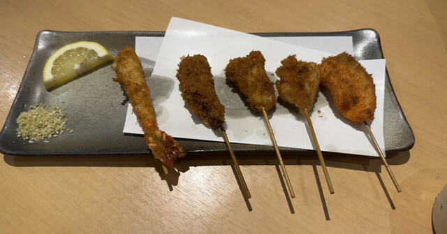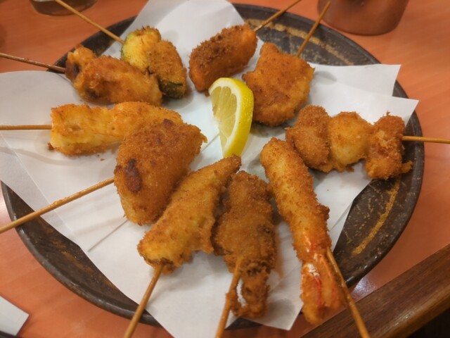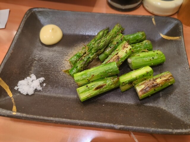 当日電話して19時半なら大丈夫〜とのこと。奥さまと2人でカウンター席へー。まずはビールで喉をしゅわしゅわさせてから黒板メニューのカニみそとアスパラ焼をオーダー。アスパラを塩で食べてめちゃ旨かった(^^) 寿司居酒屋を謳うだけあってツマみが充実。串揚げ10本も素材が生きててぷりんぷりん。メヒカ...