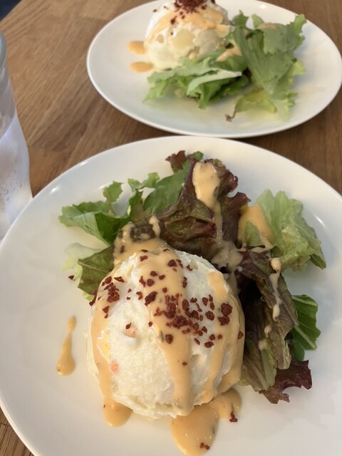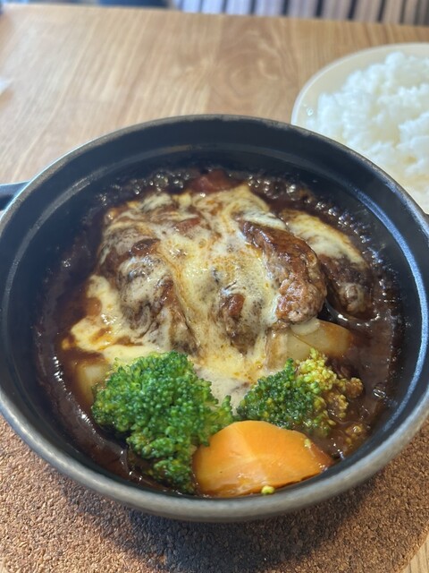 私は朝トレからのピラティス前、妻は図書館で用事を足した後に合流し、ブランチで利用。開店と同時の10:30に予約し、食事からのカフェ使いとした。事前のリサーチ通り、私は煮込みハンバーグ、妻はファヒータを注文。セットのミニサラダはポテトサラダであったが、ミニといいつつポテトのボリュームがなかなか。味はオーソドックスで美味しい。ハンバーグはお洒落なStaubの容器に入って熱々グツグツの状態で登場。コクの...