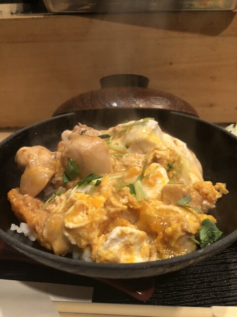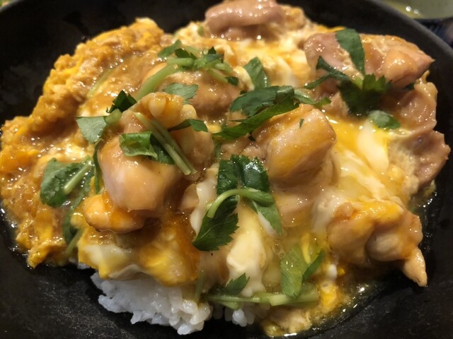 ピラティス前のランチで利用。ここ1ヶ月くらい親子丼が食べたいと思っていたが、なかなかタイミングが合わず、ようやく実現。店内はカウンター席が12席ほどであるが、11:30開店で11:35頃到着したところ、1巡目最後の席に案内された。人気の高さが窺える混雑ぶりである。予定通り親子丼をご飯大盛り(追加料金無)で注文し、程なくして登場。まずはスープから。量は少ないが、濃厚で非常に美味しい。ラーメンでも入れ...