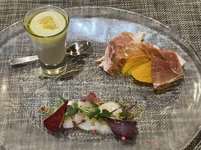 【休日ランチ、大人2名、コース予約利用】 山梨のワイナリー経由でワインを取り扱っているお店として教えていただいた飲食店。 初来店にオススメと書いてあったランチコースを予約して来店。この日は予約で満席でした。 前菜は、ひとくち最中とカルパッチョの2品、見た目も綺麗で気分があがります。 パス... 詳細を見る