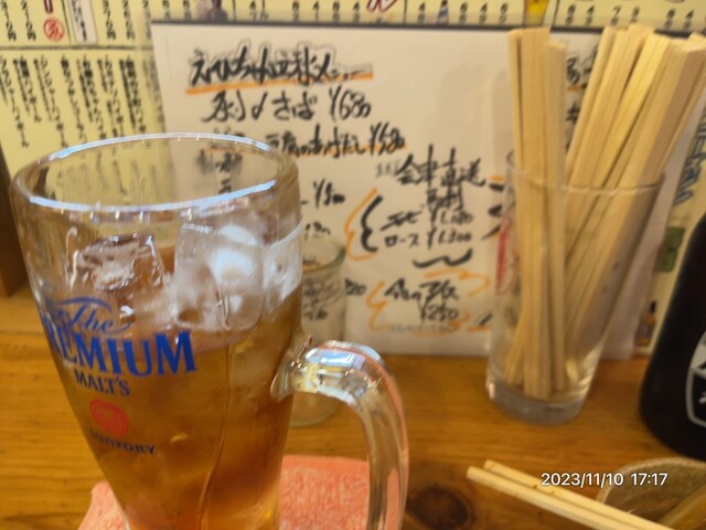 県内にたぶん7店舗あるえびちゃん。大栄橋の反対側のお店の建物が取り壊しとかで営業してなかったのでこちらへ。安定のホッピー注文。串焼きもお任せで5本注文。この店は大宮駅から遠いのであまり来ないけど、通うお客さんはキンミヤボトル入れる人が多いですね。ごちそうさまでした。