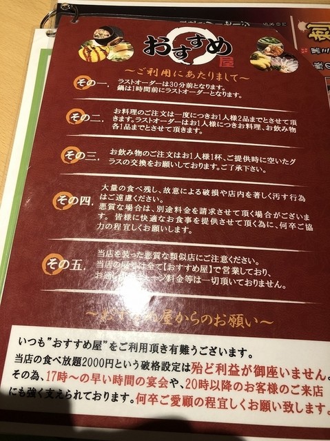 ・時間は2時間制、ラストオーダーは30分前