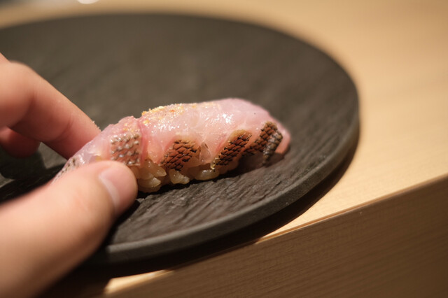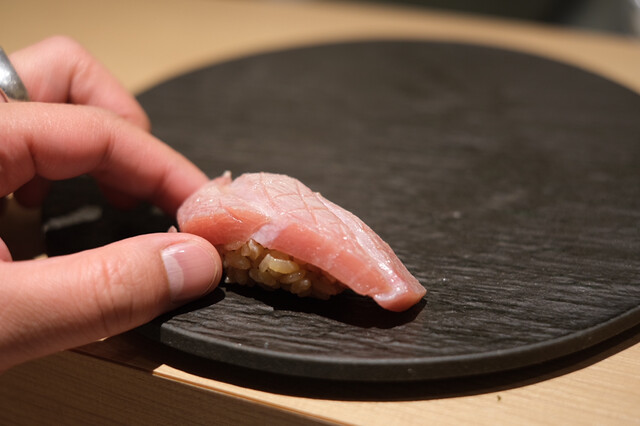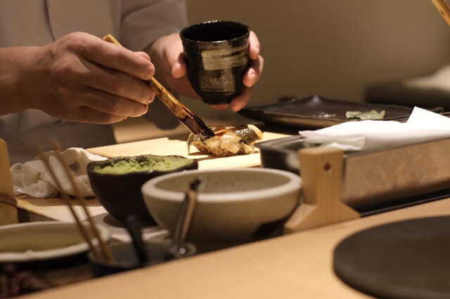 幾多の経験で培った大将の鋭い感性が光る、遊び心溢れたつまみと、伝統かつ正統をゆく江戸前鮨との計算し尽くされた対比が一つのコースの中で完結。