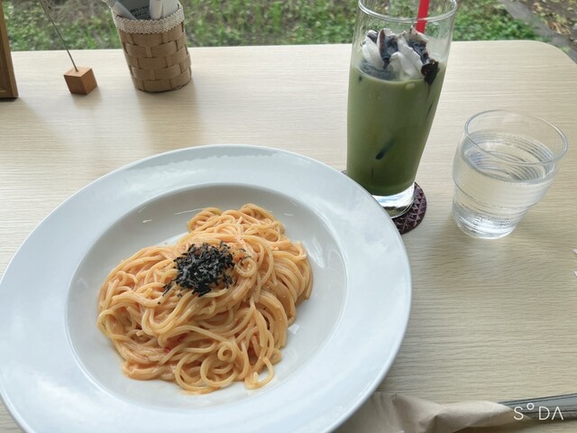 明太子パスタ、抹茶ラテ美味しかったです。