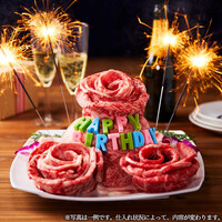 ★お祝いに嬉しいシャンパンハーフボトル付♪ 優雅な乾杯から始まる誕生日や記念日、歓送迎会はいかがでしょうか。特別な方との大切な日には、ドドンとフォトジェニックな「A5黒毛和牛の肉ケーキ」が喜ばれること間違いなし!美味しい焼肉と共に、大いに盛り上がっていただけます。もちろん、サプライズなどにもご協力できますので、お気軽にご相談ください♪