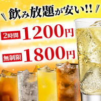 【当日予約OK♪】2時間飲み放題が1,200円/無制限飲み放題が1,800円で!