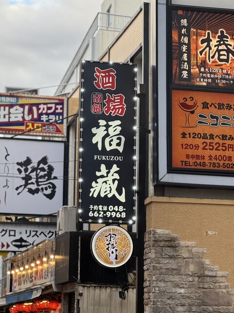 そして当然のごとですが繁華街には飲み屋さんがひしめき合っているんですよね。伺った福蔵さんもそのひとつです。大宮駅から歩いて2分の距離にあるのでアクセスもとても良いですね。