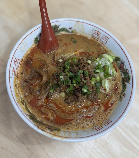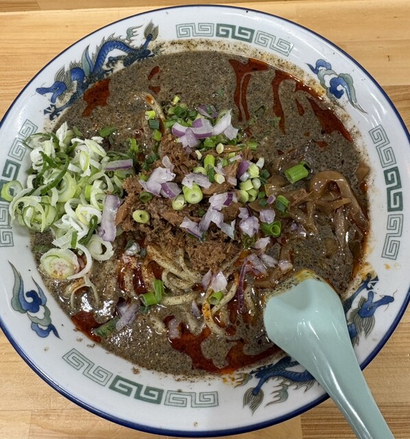 黒胡麻担々麺はスープがドロドロと濃厚で、胡麻の風味が効いていて良かった。定番の担々麺より辛さが抑えられていて辛...