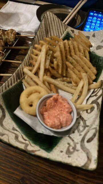 浦和駅近くにある高山商店 浦和本店を訪れました。つくねを軸にした居酒屋として評判のお店で、実際に行ってみるとその魅力をしっかり感じることができました。まず印象的だったのは、生つくねの種類の多さです。定番はもちろん、変わり種の味まで揃っており、次はどれを頼もうかとつい追加注文してしまうほどの楽しさがあります。お通しとして出てくるきゅうり食べ放題も嬉しいサービスで、箸休めにぴったりでした。また、昼の12時から営業しており定食メニューも充実しているので、ランチ使いにも昼飲みにも重宝できる点は魅力的です。店内は掘りごたつ席や個室風の座敷もあり、仲間内での飲み会や宴会にも使いやすい雰囲気でした。さらに唐揚げなどの一品料理も豊富で、つくね以外にも食べたいと思える料理が多い点も高評価です。一方で人気店ゆえに混雑することが多く、特に夜や週末は予約しておいたほうが安心です。また、一部の料理は好みが分かれる濃い味付けのものもあり、人によっては合わないと感じるかもしれません。加えて店内は喫煙可のため、タバコの煙が気になる方には少し抵抗があるかもしれません。総合的には、つくねの多彩さと昼から楽しめる居酒屋スタイル、使い勝手の良さが光る一軒で、浦和で気軽に飲みたい時や仲間とわいわい食事を楽しみたい時にぜひおすすめしたいお店だと思いました。