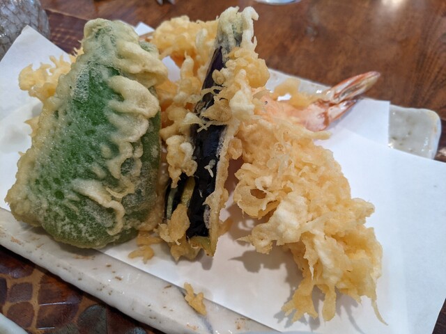 天ぷらの海老が2本なのでシェアすることに。