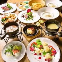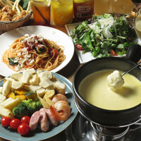 コスパ◎のコース!看板メニューチーズフォンデュ、パルミジャーノチーズリゾット、選べるピザ、サラダなどシェアしてお楽しみください。〆のデザートにしっとりなめらかなニューヨークチーズケーキとオリジナル深煎りコーヒー♪生ビール、ワイン、スパークリングワイン、ノンアルカクテルetc30種類から選べるワンドリンクもついております!
