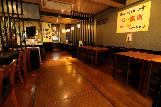 いつの間にか皆が集まったり、時には女性一人飲みも。そんな気軽で心地良い一時を提供する【家庭料理 かわじ】。お出しするのはこだわりの家庭料理。夏にはオリジナルレシピがやみつきの<ゴーヤチャンプルー>、冬には<おでん>や<ぶり大根>などの旬料理を。様々な味わいに合わせたくなる日本酒では3種類選べる”利き酒セット”をご一緒に◎大人数のご利用には月替わりのコース料理で貸切宴会などもおすすめです。