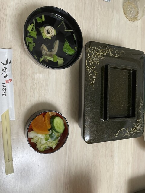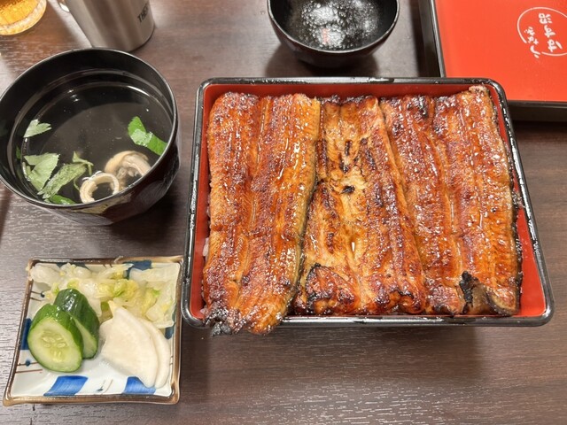 うなぎが超ふわふわで美味しかった。タレの味も丁度良い。ただ一点、ゴハンがほろほろ過ぎて、箸で持ってもすぐ崩れてしまい、食べずらかった。本当はうなぎとゴハンを一緒に持ち上げて頬張りたかった。少し残念。で...