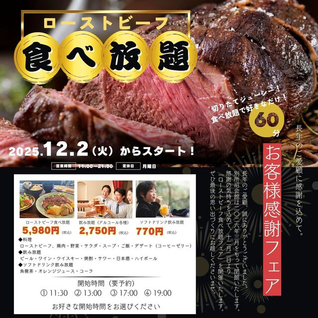 | サービス | 2時間半以上の宴会可、お祝い・サプライズ可 |