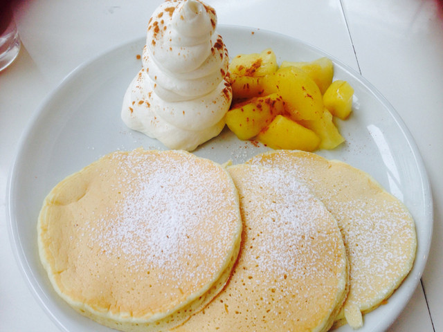 美味しい半熟パンケーキと有機野菜たっぷりのお食事プレートを開放的なカフェで!