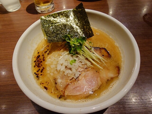 先日、飛び込みで入ったラーメン屋で地雷を踏んだので、リベンジとばかりに飛び込んでみました。 大正解です。 昼時なので、外で待つように言われましたが、回転が速く、ほとんど待つ間もなくに中に案内されました。テーブル席とカウンター席があり、外から見るよりも広い店内です。カウンター越しに厨房が... 詳細を見る