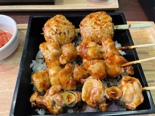 焼き鳥重にはタレで焼かれた焼鳥4本が刻み海苔...